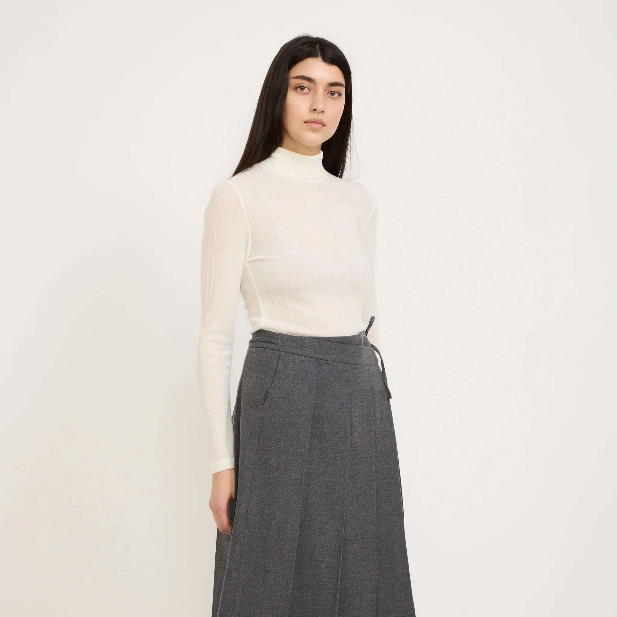 From the A.P.C. core line, the high necked Assia top is cut from a soft wearing, and slightly sheer, breathable wool blend fabric featuring subtle ribbed detailing