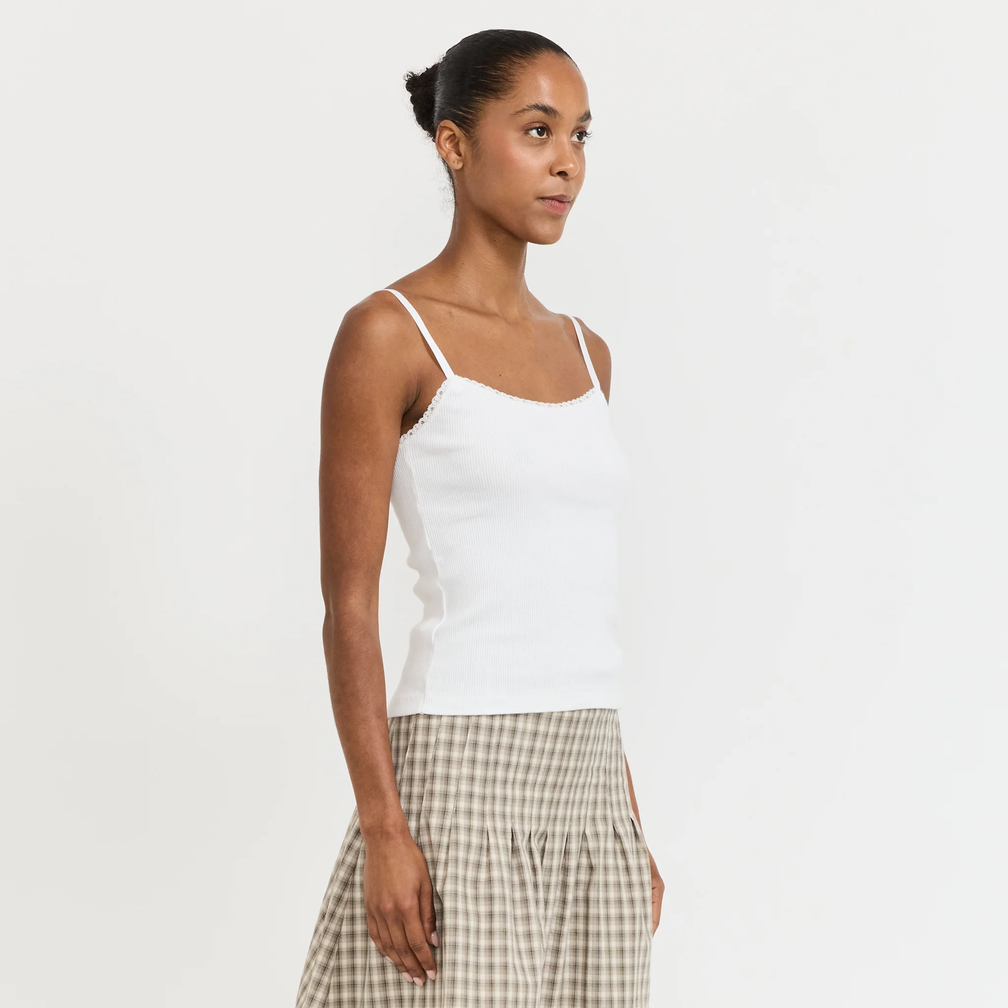Lace Strap Soft Rib Tank White