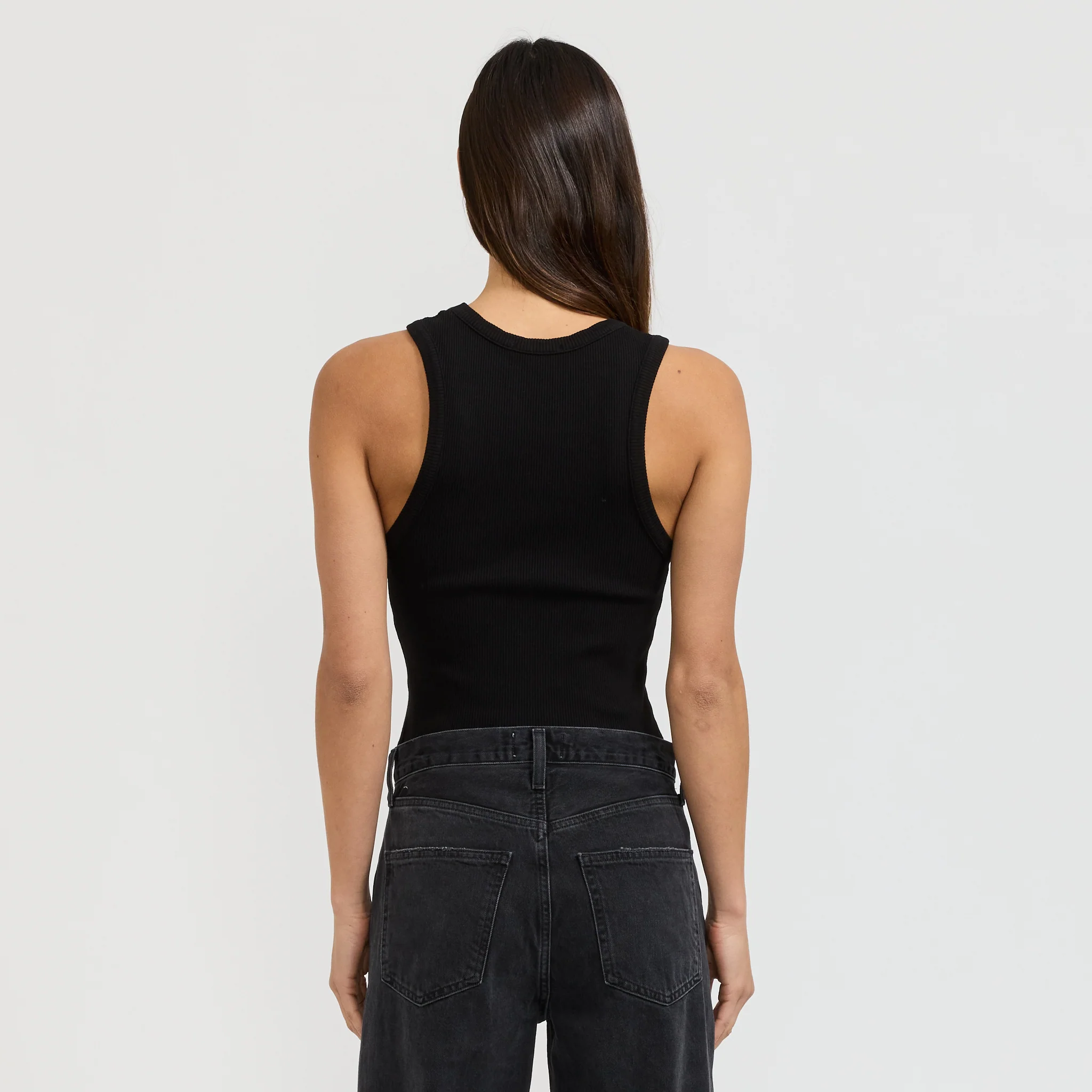 A new favourite, the Poppy tank in Black from Agolde is the perfect rib tank to be worn back with denim. Crafted from a soft and sustainable blend of organic cotton and plant based tencel.