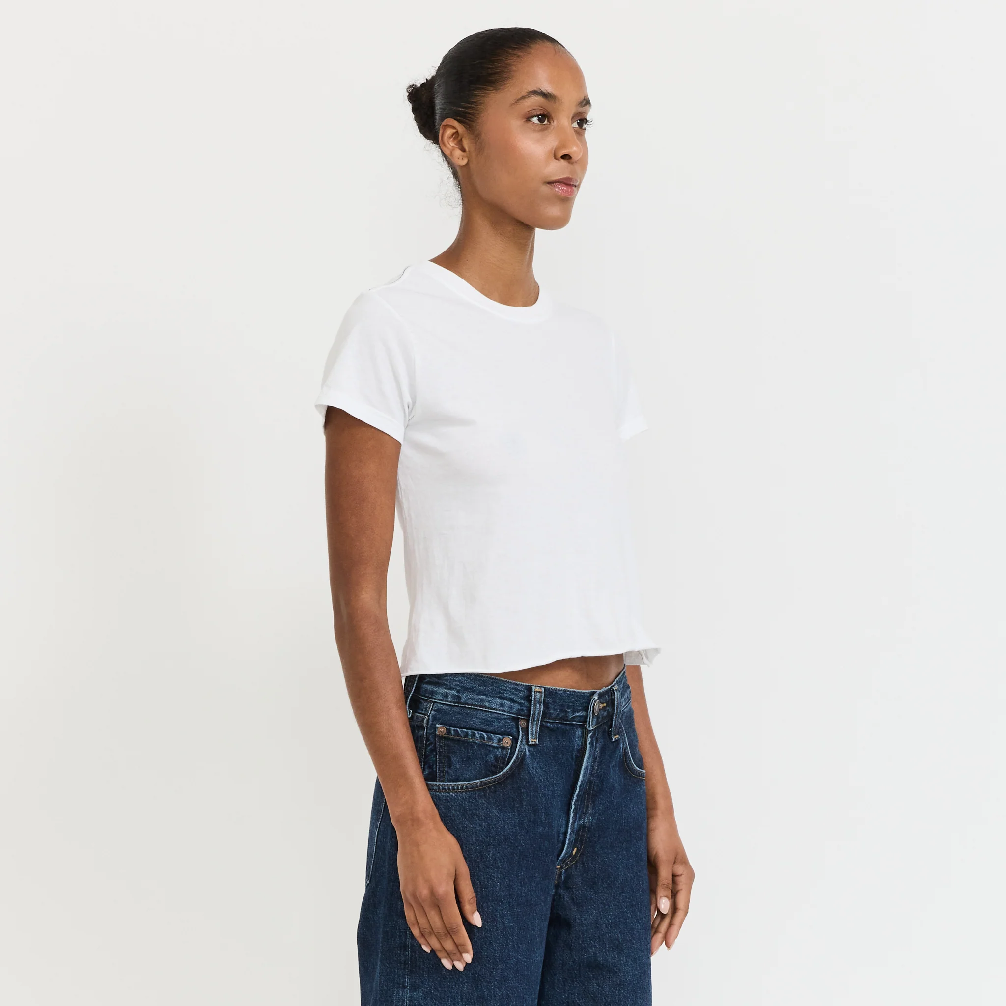 The slim fit Baby Tee from Bassike is made in Australia from an organic single cotton jersey and features a raw edge hem and signature contrast back neck stitch.