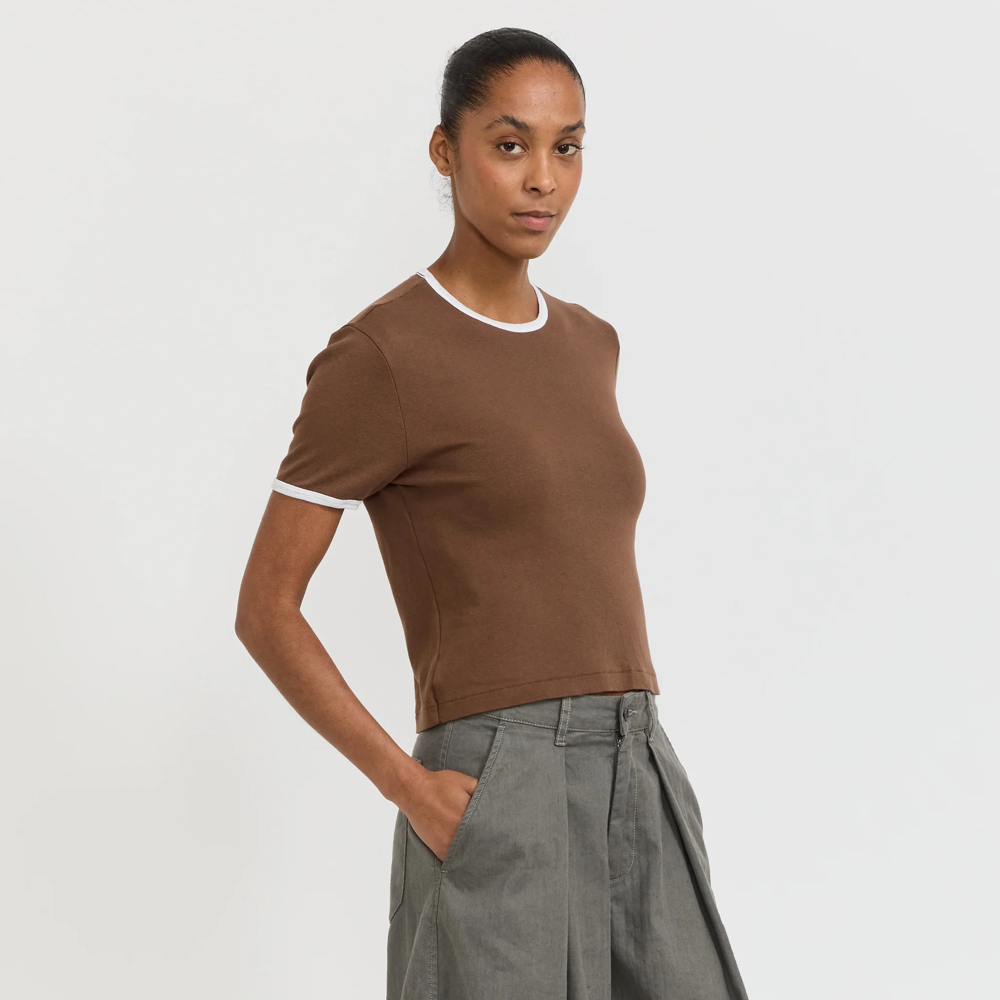 Rib Contrast Baby T-Shirt Chocolate Brown/White