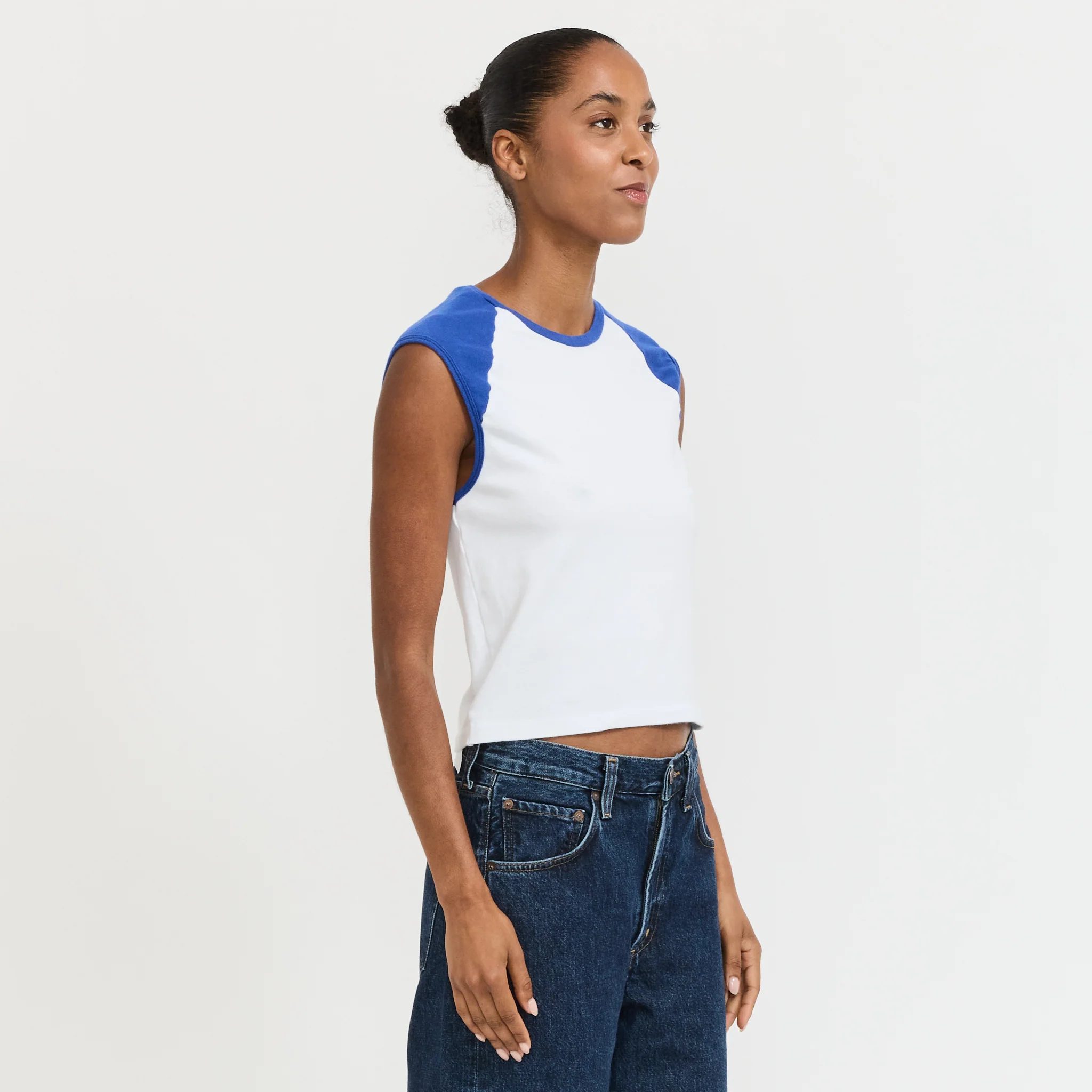 Slim Raglan Rib Tank White/Cobalt